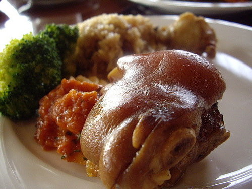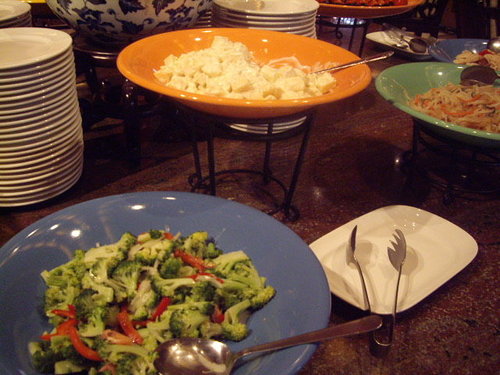 [熟食區]有十幾道菜與蒸籠,大概包含了炒飯、牛小排、美味鮮魚、雞肉、季時蔬菜、焗海鮮、德國豬腳、芝麻球、蝦捲、蟹肉等等,另有兩鍋熱湯, 這天是巧達湯和四神湯