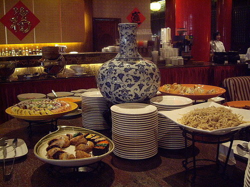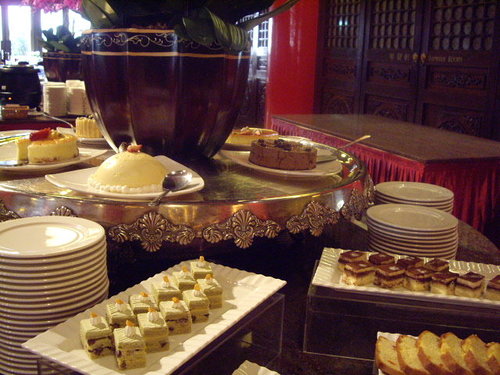 樂廊下午茶的菜色,為「熱食區」、「冷盤區」、「甜點區」、「水果區」與「飲料區」。