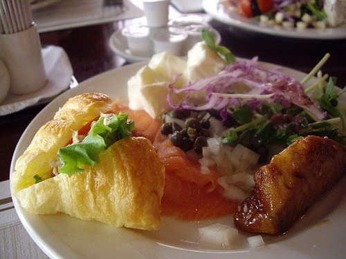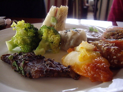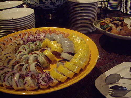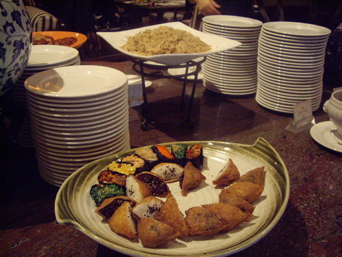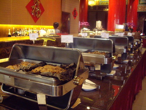 冷盤莎拉區則有三明治、燻鮭魚、壽司拼盤、手捲、醉雞、素菜、蜜餞蕃茄、生菜、沙拉、涼麵等等十多道菜。