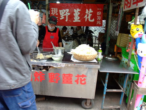 內灣著名的野薑花,這攤是用炸的,炸的?這會好吃嗎?!