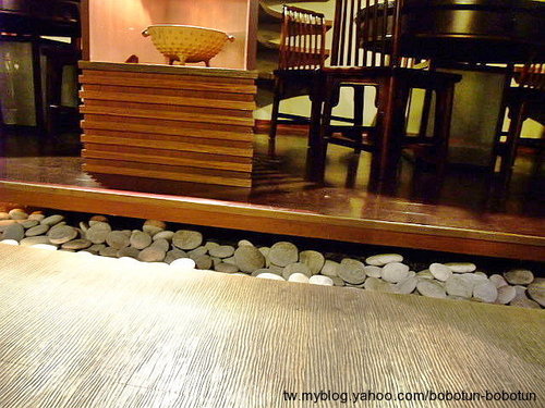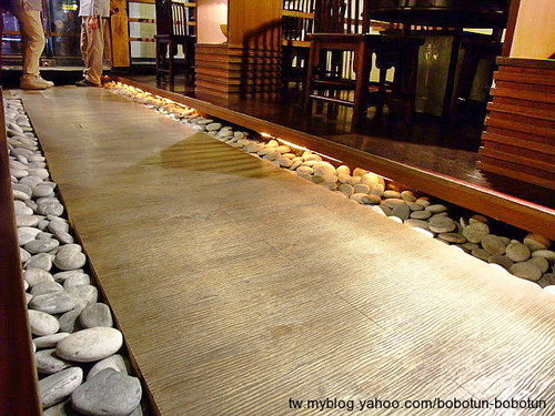 走道兩旁鋪著拳頭般大小的鵝卵石,看得出店家在裝潢上下了不少功夫