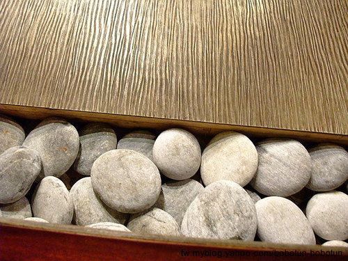 店門口一排的鵝卵石,與店內擺設裝潢倒是很有一致性的相呼應著