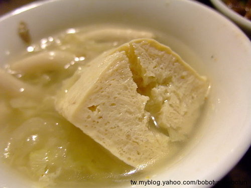 白鍋的凍豆腐,很奇怪,煮很久,但豆腐裡層都還是硬的,這豆腐凍的還真透徹啊。。。