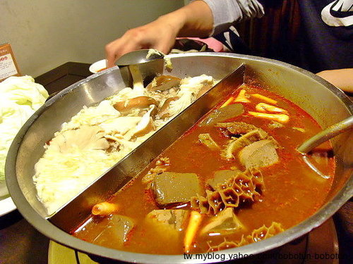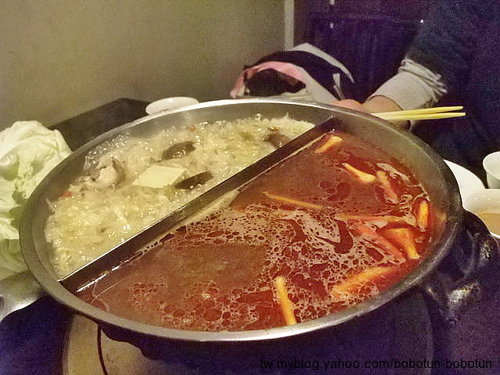 今天點的是鴛鴦,麻辣鍋的辣度不會很嗆;酸白菜鍋的酸度也很令人開胃。