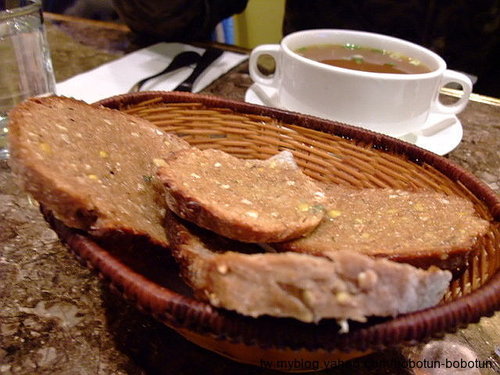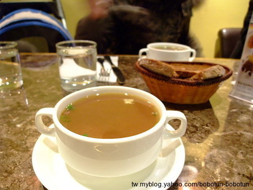 大概是德國家常湯吧,裡面只有切片的德國香腸和蕃茄的清湯,但非常鹹~~~