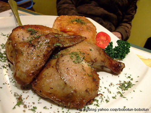 黑森林鄉村烤半雞,附有肉醬千層麵