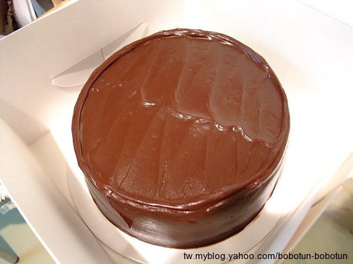 原味巧克力蛋糕,awfully chocolate巧克力蛋糕的口感特別,與傳統巧克力蛋糕非常不同,外型樸實,表面除了手工鋪抹紋路的巧克力醬外,沒有其他裝飾