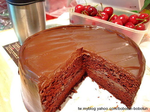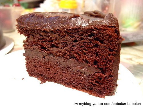 蛋糕體濕潤有彈性,巧克力味道也很濃郁