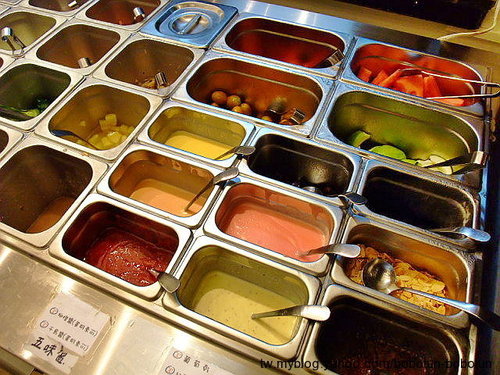 沙拉醬高達六種,有柚子、 和風、 柳橙、 千島、 紅莓、 法式香甜芥末醬,素食者可否食用也都有附說明喔