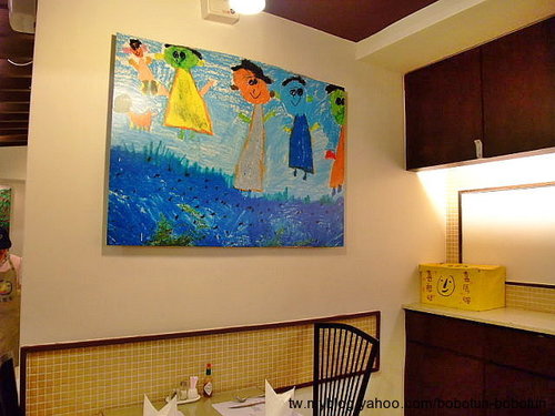 室內裝潢簡潔,牆上很多憨兒的畫作,和憨兒工作海報