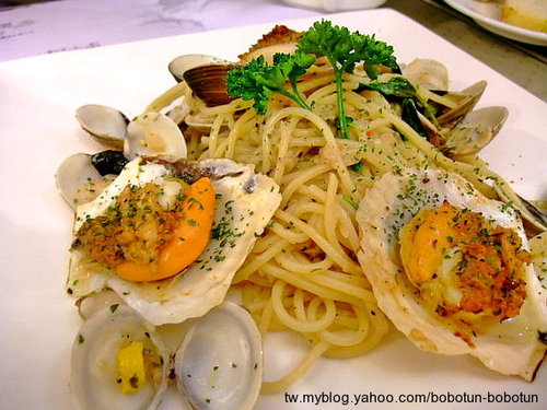 香蒜辣味扇貝蛤蠣義大利麵,非常好吃喔
