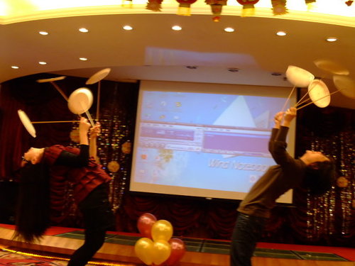 如何讓長竿支起翩翩飛舞的碟子勒~~~這可是要技術的喔