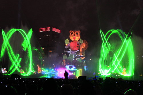 今年的主燈燈光秀很炫,除勒雷色、水舞,還搭有水火勒。。。