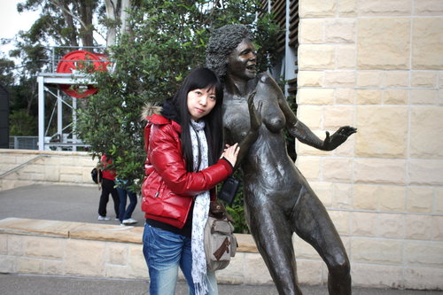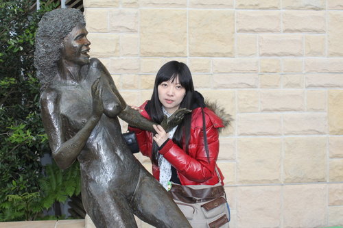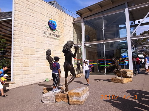 門口的三個的雕像就是藍山有名的三姐妹岩傳說中的三姊妹啦