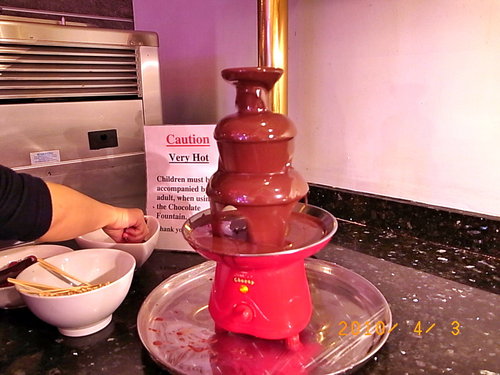 也有巧克力瀑布ㄟ,台北現在連麻辣火鍋吃到飽餐廳都基本備有這玩意~~~