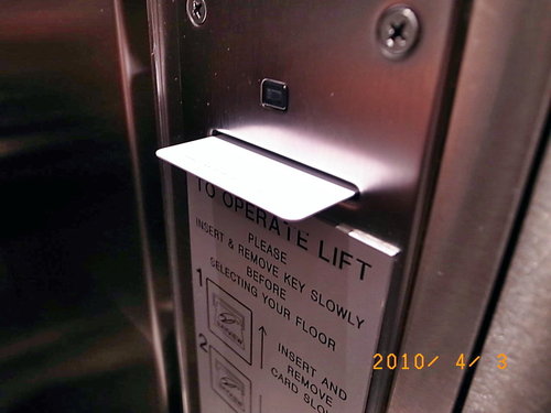 飯店電梯需要房卡才可啟動,保全做的不錯