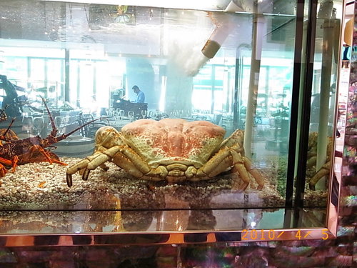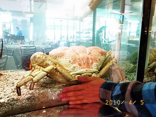 吃飽下樓,樓下的海鮮餐廳那個螃蟹真是巨蟹啊,聽說這叫澳洲皇帝蟹,我的媽啊真的好大~~
