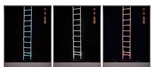 這是個LED線搭成的軟梯吧,黑暗中他會變換顏色,但我不知到他到底要表達啥。。。。