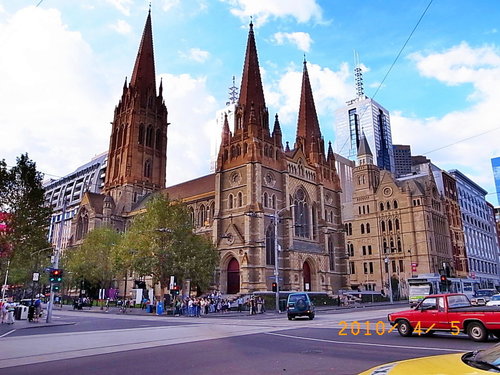 據說是由英國建築師William Butterfield所設計,但建造卻是由墨爾本建築師Joseph Reed於1836年建造完成,內部挑高的設計令人嘆為觀止。這個教堂位於聯邦廣場的正對面,不過去的遊客不多,因為大家都跑去看第一大的聖派翠克教堂啦