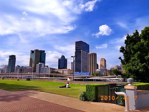 南岸公園有大片的綠色草地,又有布里斯本河蜿蜒流經,公園裡還許多露天咖啡座,